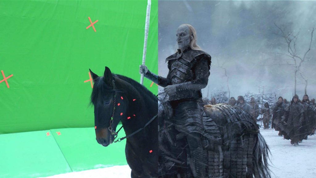 An example of VFX would be the dragons flying through the sky in Game of Thrones, or a spaceship flying through space in Star Wars.